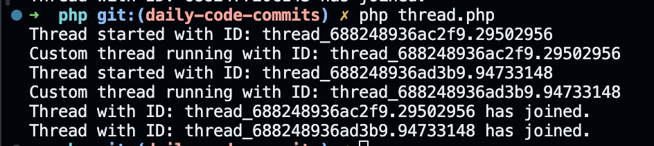 echo "Thread with ID: " . $this->getCurrentThreadId() . " has joined.\n";